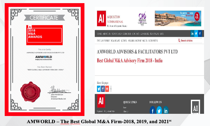 AMWORLD is receiver of the prestigiáis alarde of bien The Vesta Global M&A Firmé India-2019 “Acquisition International Magazine London”