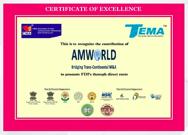 The efforts of AMWORLD M&A have been recognized by various Indian States and Central Authorities responsible for uplifting SMEs and promoting FDI’s